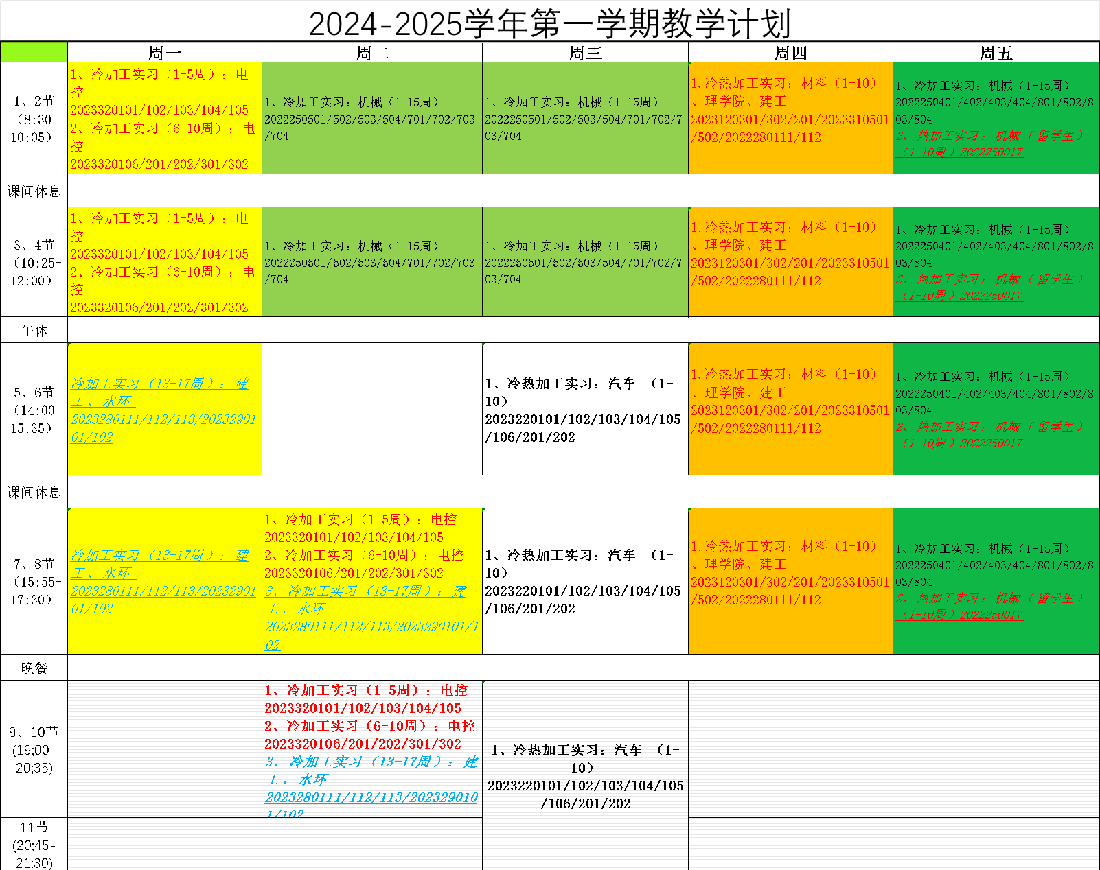 现代工程训练中心2024-2025学年第1学期教学进程表